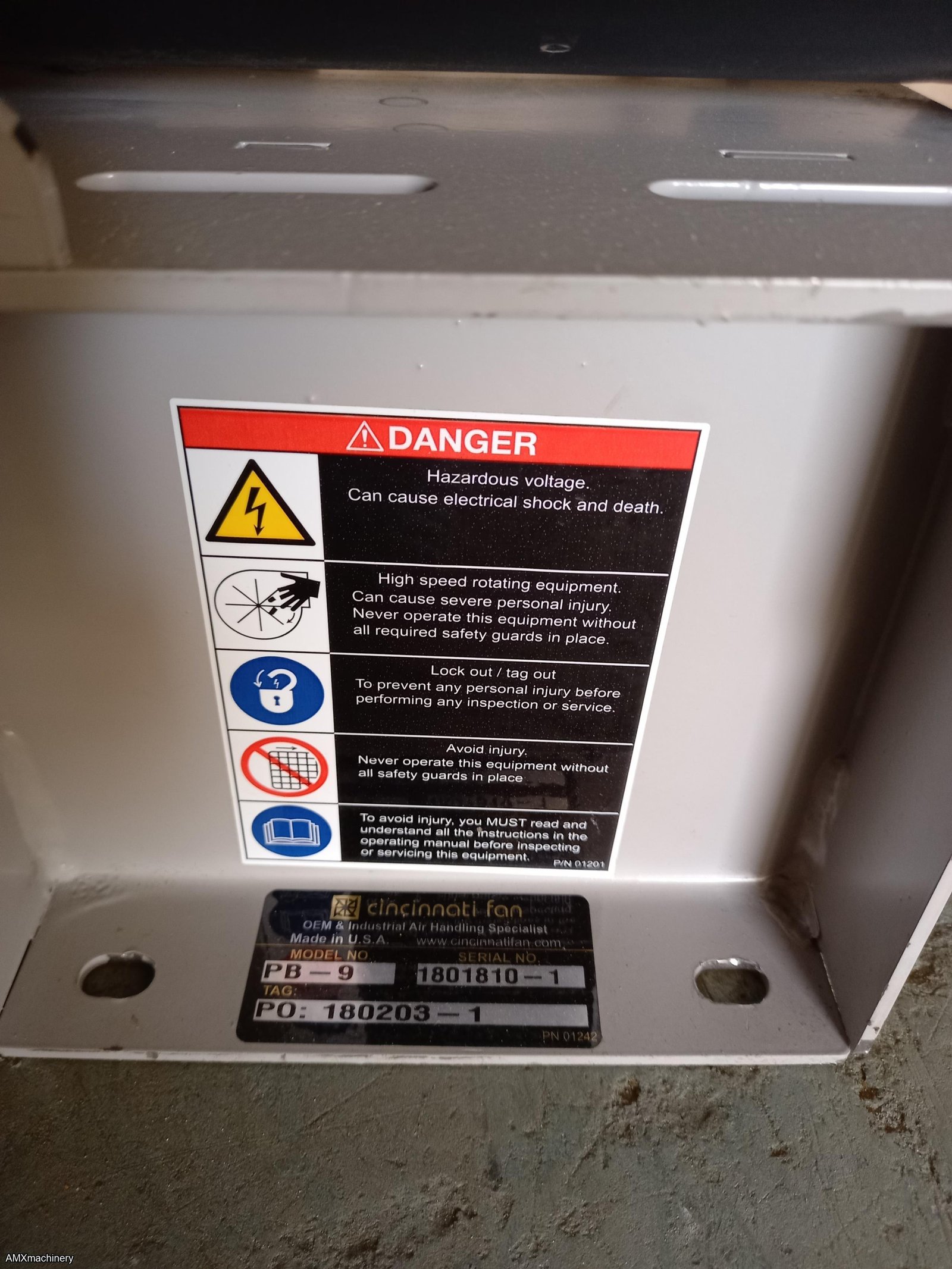 PARTE: AMX-10081 - EXTRACTOR DE TURBINA - MOTOR 1 HP - CINCINNATI FAN