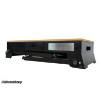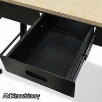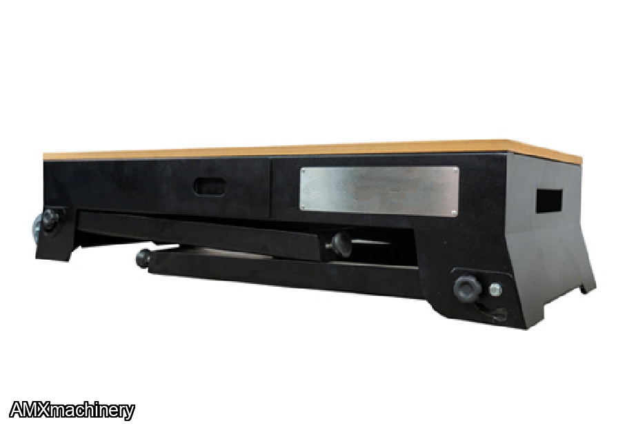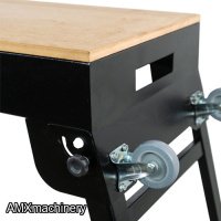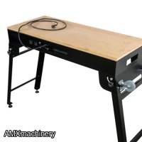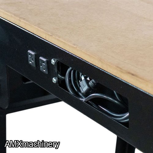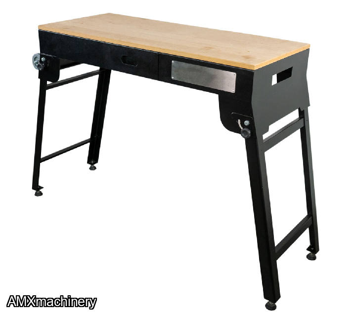 The table is made of MDF with a work area of 39” x 16.5” and the rigid sheet structure can hold up to 441 Lbs. The convenient built-in drawer is ideal to store small accessories. It also comes with two sockets and 6.5 ft long extension cord, the retractable legs paired with wheels are super handy whenever moving or transporting it to different locations.