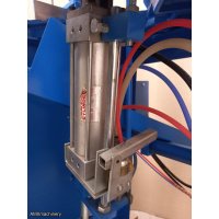 2 pistones pequenos a los lados que se activan antes de que las sierras bajen y suban, para que no se mueva el material a cortar