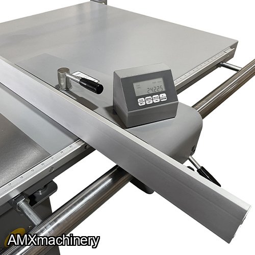 Is a powerful sliding panel saw from Maksiwa, equipped with a 7.5HP main motor and ¾ HP Scoring motor (3 phase). The 126” sliding table is constructed of anodized aluminum and runs on precision linear guide rails that gives you an ultra-smooth movement allowing you to move the table effortlessly. Designed with a European style 51″ rip fence, it has a digital readout with a micro adjustment for fine-tuning; simply lock it in place and adjust fence incrementally. The rip fence consists of a heavy-duty casting riding on a micro-polished solid steel bar.