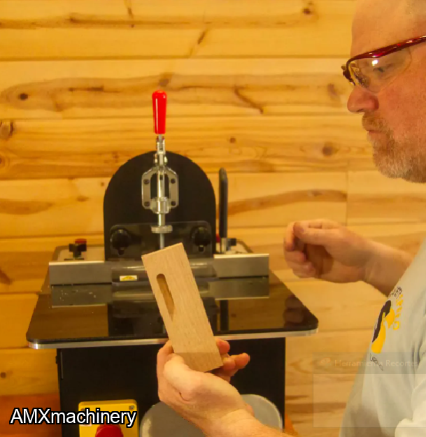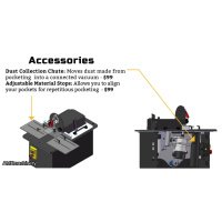 The screw pocket machine drills a pilot hole while machining a six degree screw pocket with dual routers and an easy action lever.  An “EZ” action lever allows operators to pocket as material allows in two movements, without the need for finding a neutral position.
